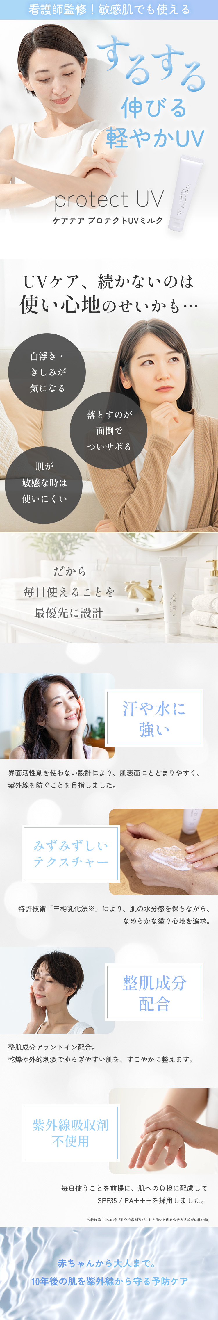 【赤ちゃんも使える】キシミ感なく、軽い付け心地 【定期便】ケアテア プロテクトUVミルク