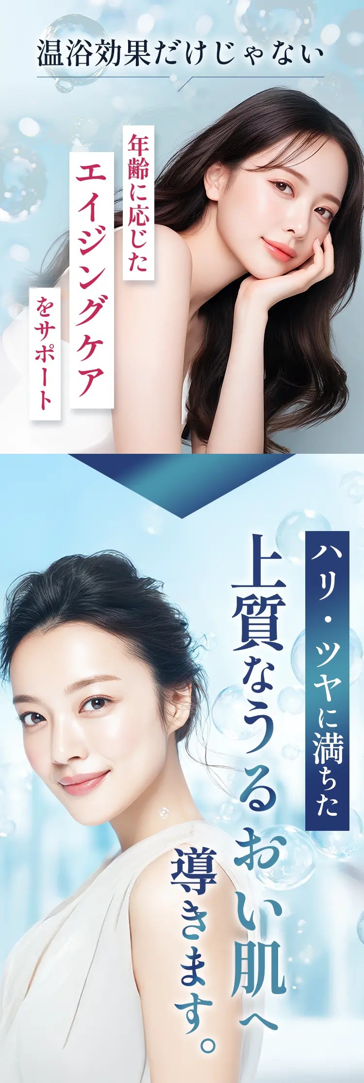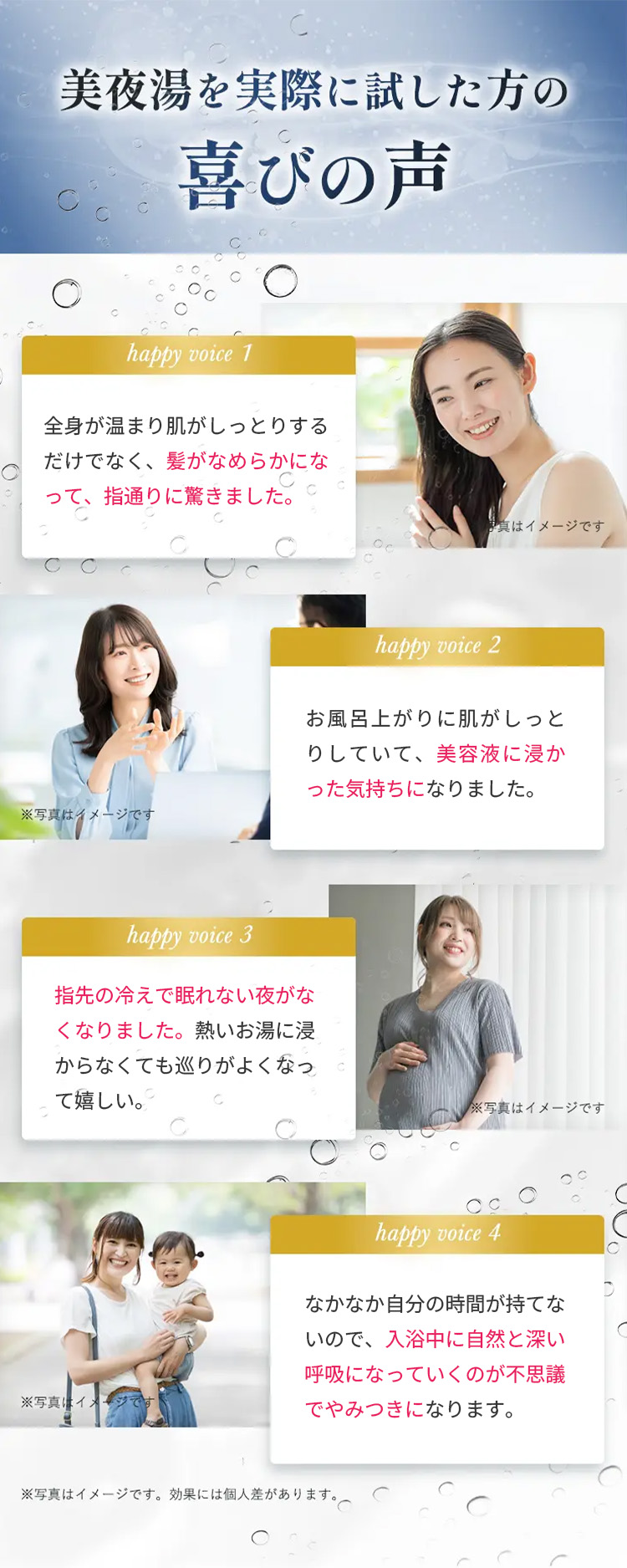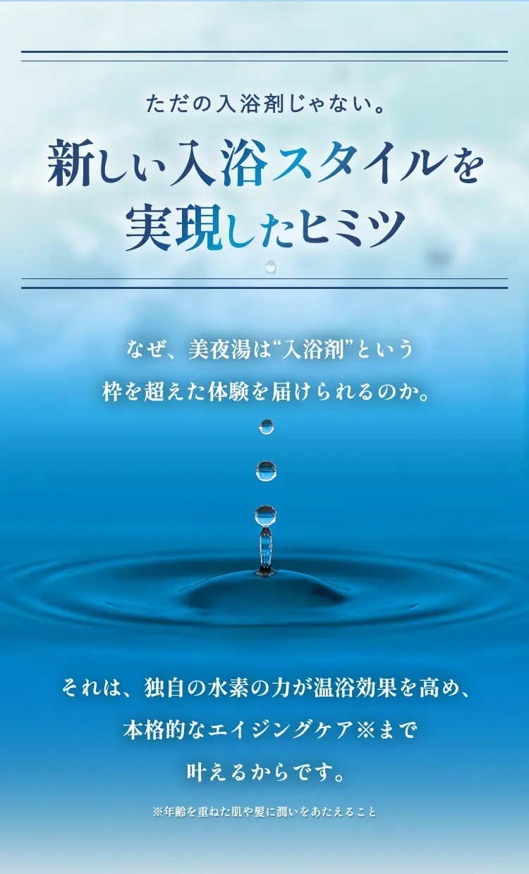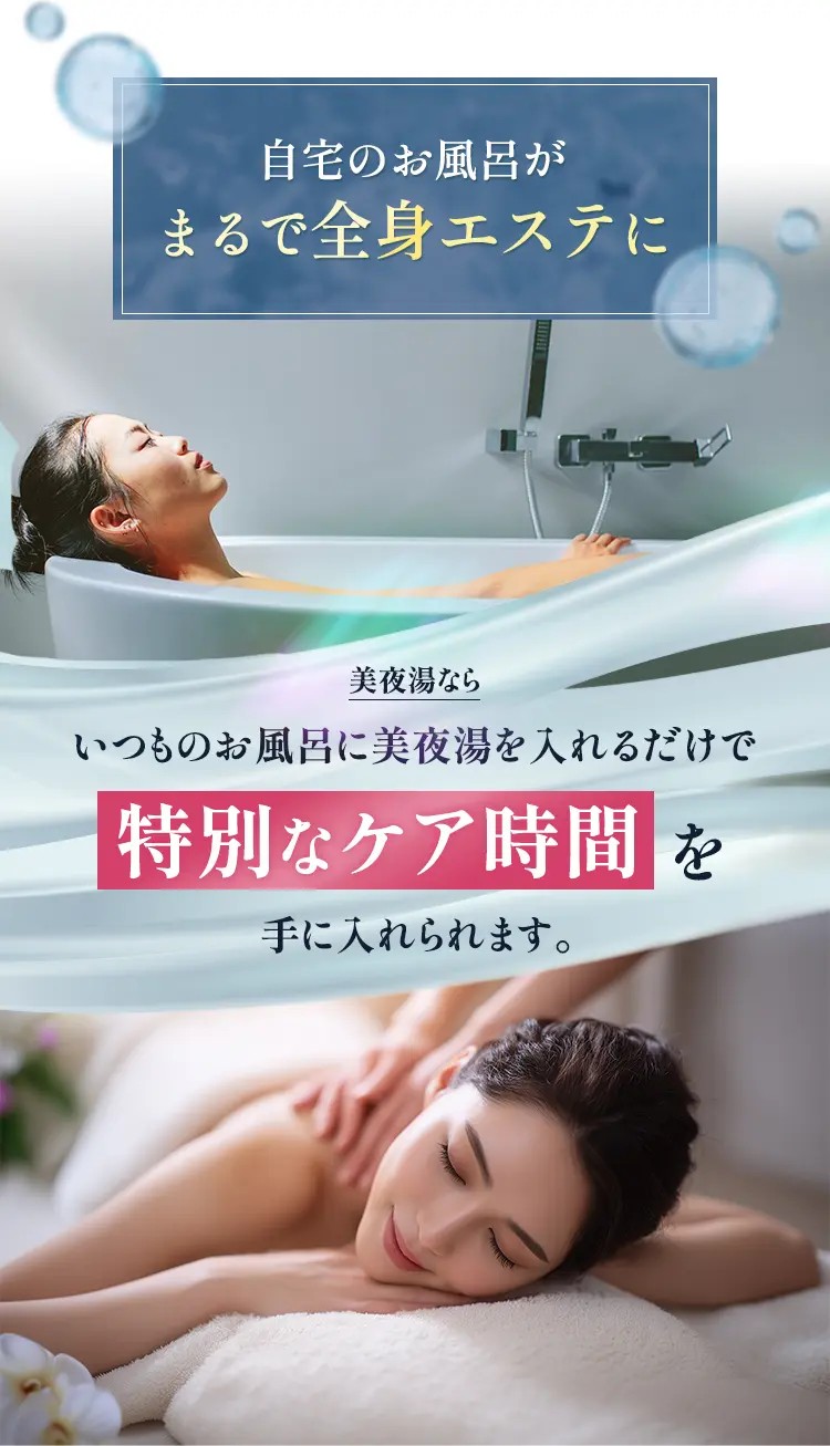 湯ざわりがやわらかくなり、入浴後はしっとりなめらかな肌へ。水素との相乗効果で贅沢なバスタイムを叶えます。