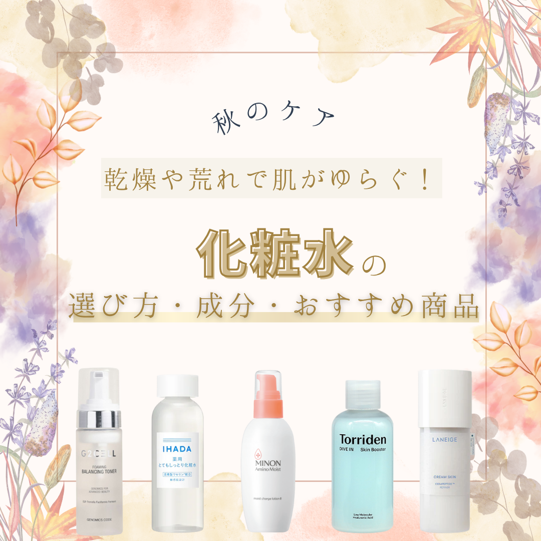夏のダメージが徐々に表面化する、秋の時期。乾燥が気になりだしたら、保湿に重点が置かれた化粧水にトライしてください。コンディションが乱れているときは、肌荒れ防止成分が入っているものも有用ですよ。